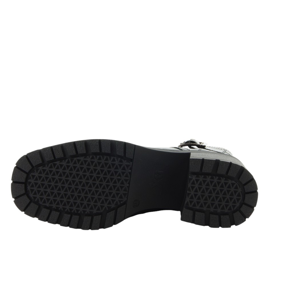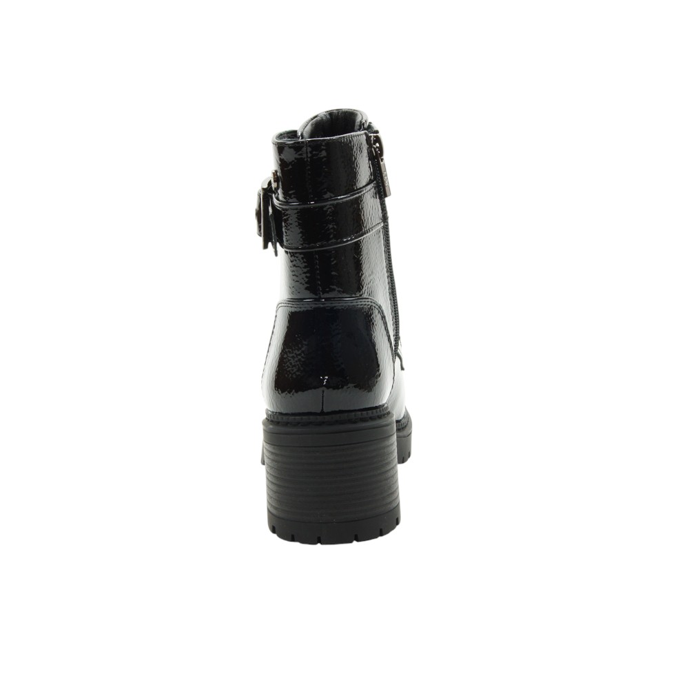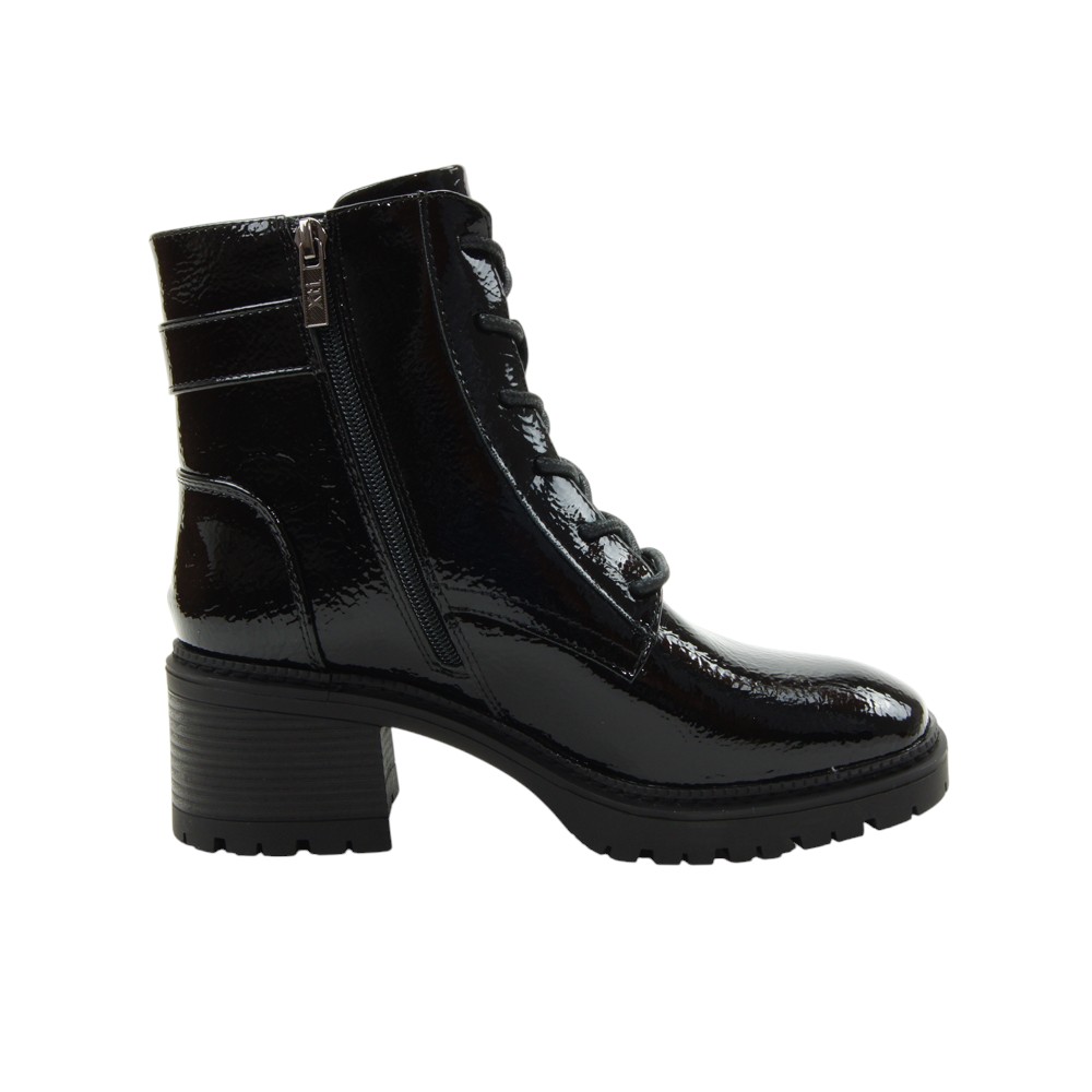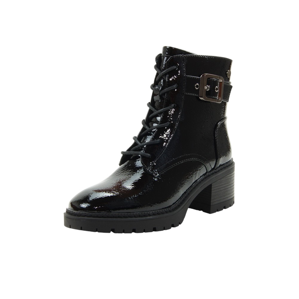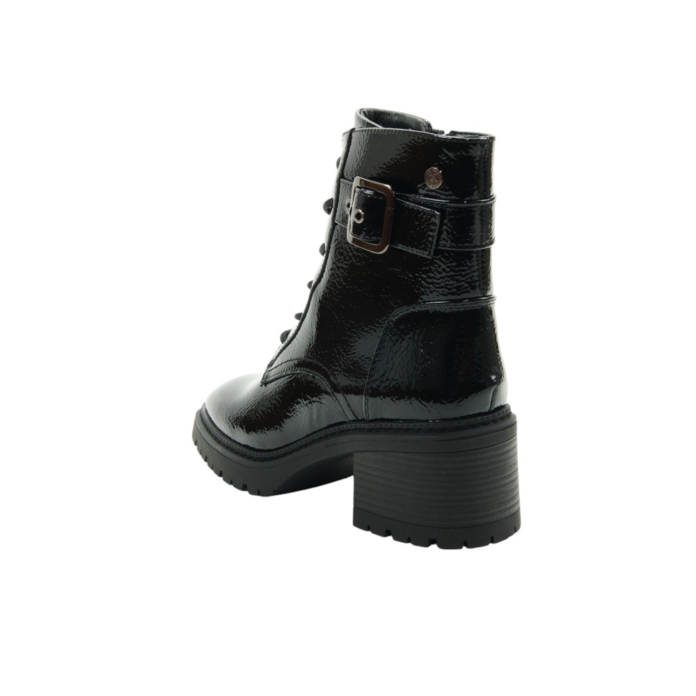 Modelo vegano fabricado en charol, ofreciendo un estilo moderno y brillante. Ajustable con cordón central y cremallera lateral para facilitar el calce. Con hebilla decorativa en el lateral. Suela dentada de goma flexible y antideslizante.- 36