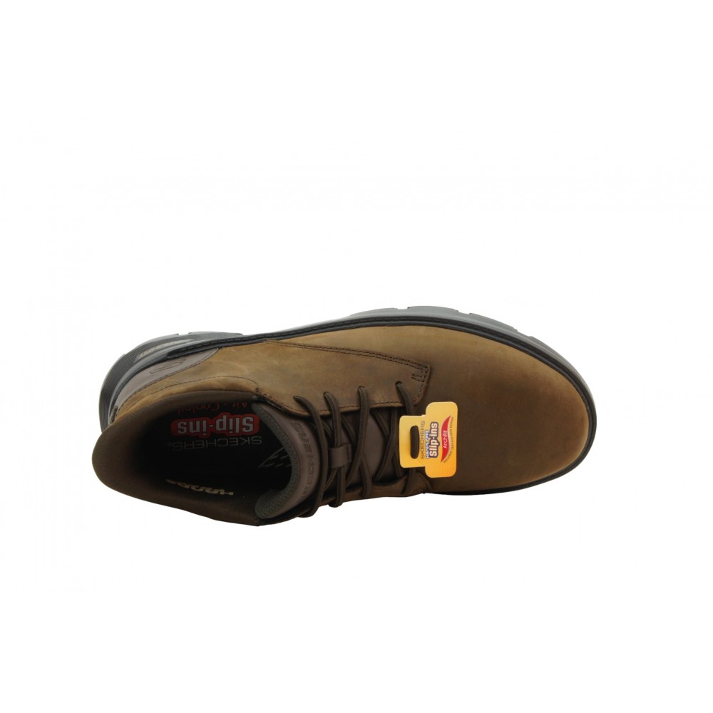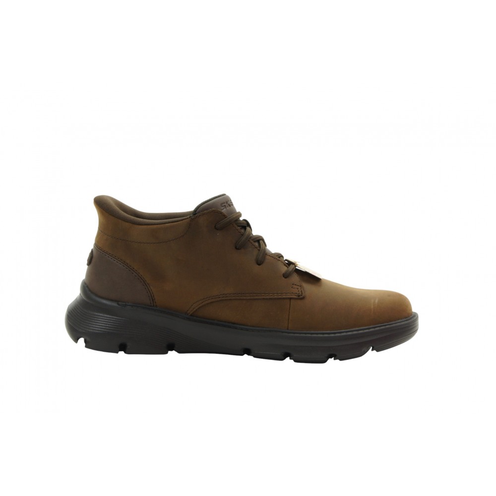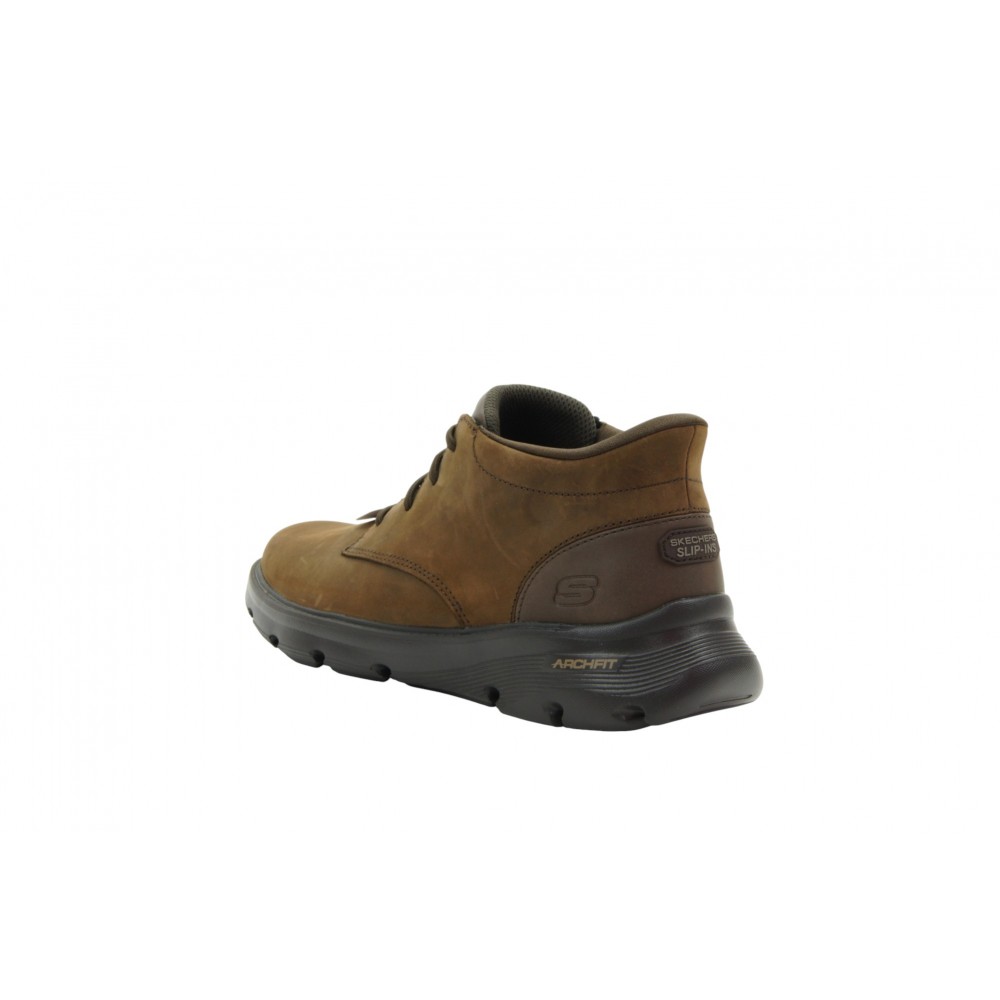 Botín fabricado en piel engrasada ajustable con cordones. Plantilla extraíble con amortiguación Air-Cooled Arch Fit, la plantilla que ofrece soporte en el arco plantar. Posibilidad de colocar una plantilla podológica. Incorpora una almohadilla en el talón Heel Pillow que mantiene el pie sujeto en su sitio. Suela ligera y flexible de goma EVA. Slip ins, la facilidad de ponerlo sin manos.- 39