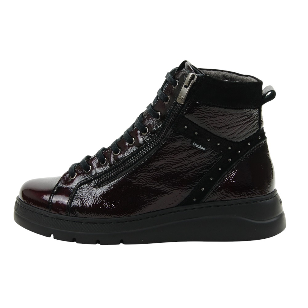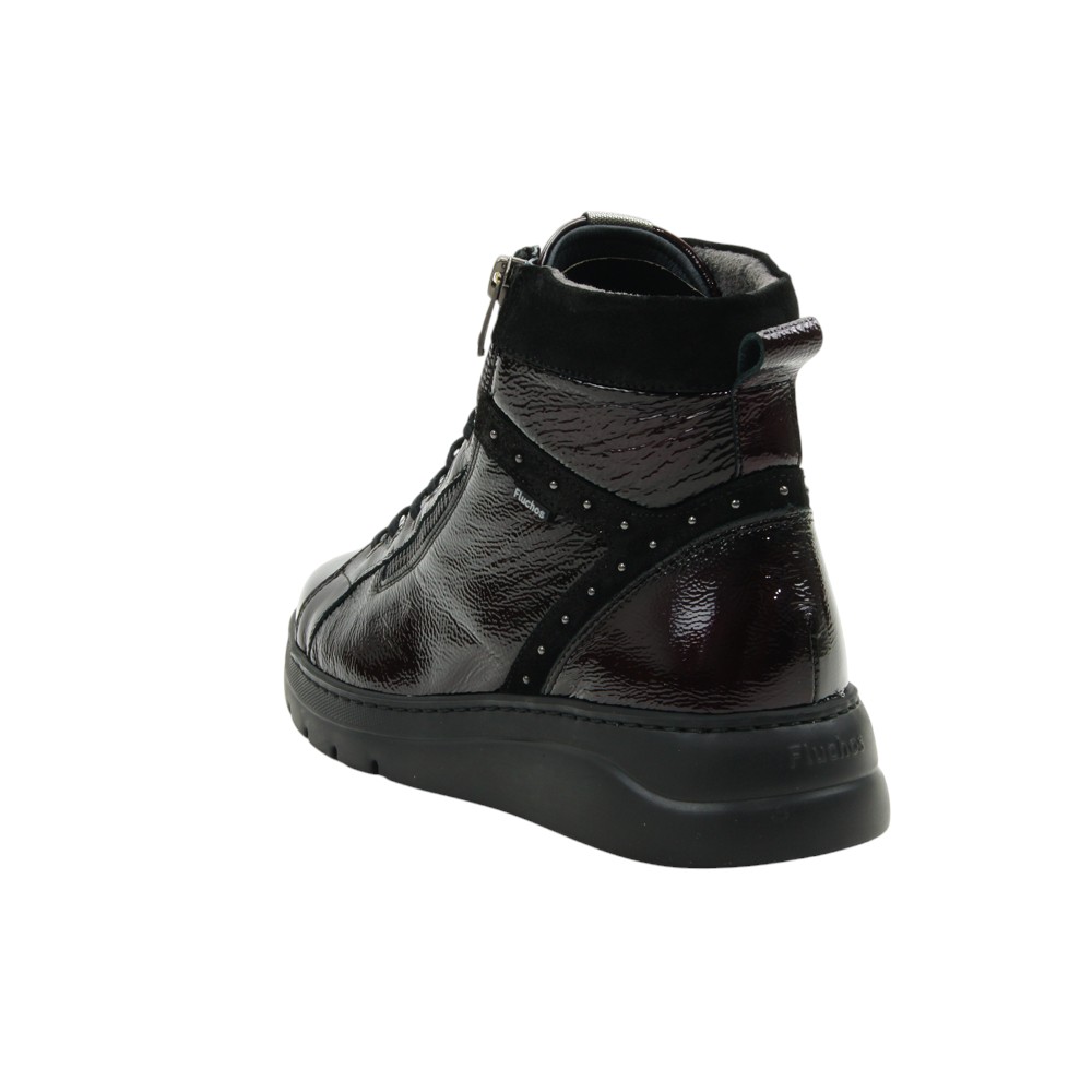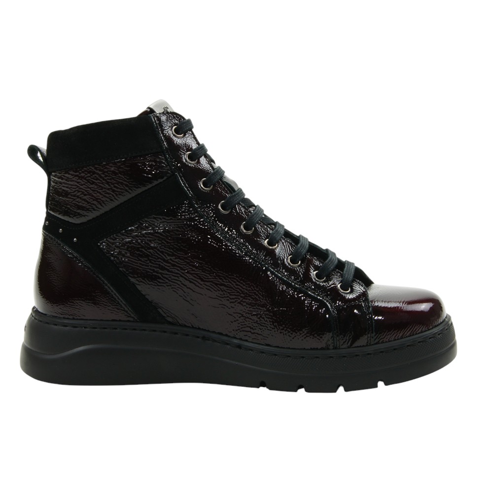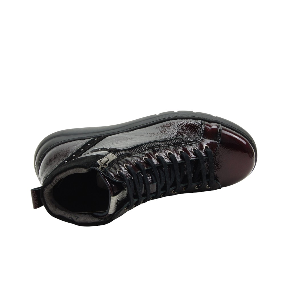 Botín fabricado en charol. Ajustable con cordones y cremallera lateral para facilitar el calce diario. Dispone de plantilla extraíble con posibilidad de colocar una plantilla podológica propia. Suela de goma ligera gracias al material extralight y sistema Shock Absorber para una amortiguación perfecta en cada pisada.- 37