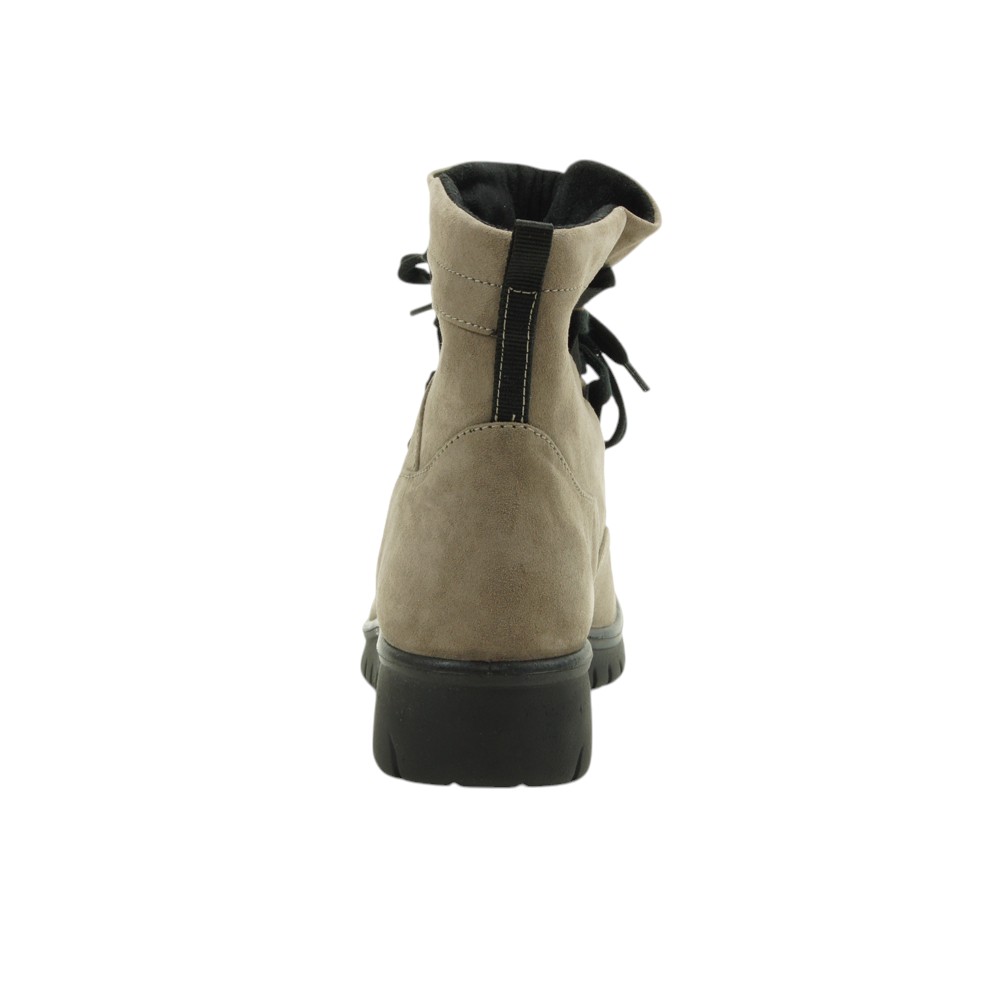 Éste botín de ancho especial y plantilla extraíble es ideal para asegurar el confort del pie incluso en las peores condiciones metereológicas, gracias a su membrana impermeable y transpirable TOPDRY-TEX. El material exterior es AMARETTA un material resistente y muy blando que permite ser lavado a 30ºC. No tienen costuras en la parte delantera y por lo tanto perfecto para pies con problemas de juanetes o dedos curvados. Ajuste con cordones.- 36