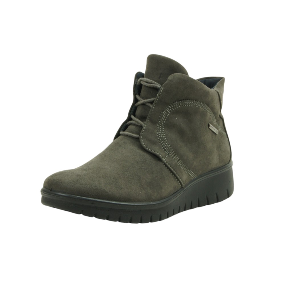 Éste botín de ancho especial y plantilla extraíble es ideal para asegurar el confort del pie incluso en las peores condiciones metereológicas, gracias a su membrana impermeable y transpirable TOPDRY-TEX. El material exterior es AMARETTA un material resistente y muy blando que permite ser lavado a 30ºC. No tiene costuras en la parte delantera y por lo tanto perfecto para pies con problemas de juanetes o dedos curvados. Ajuste con cordones.