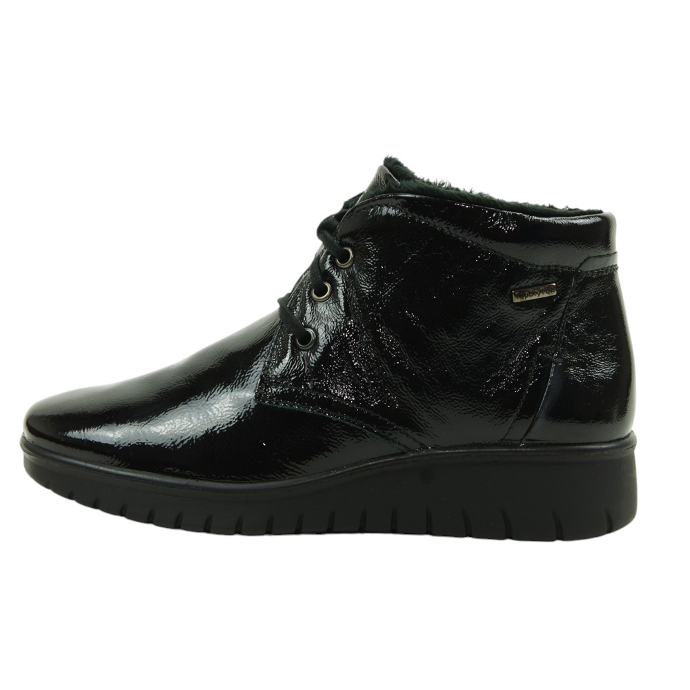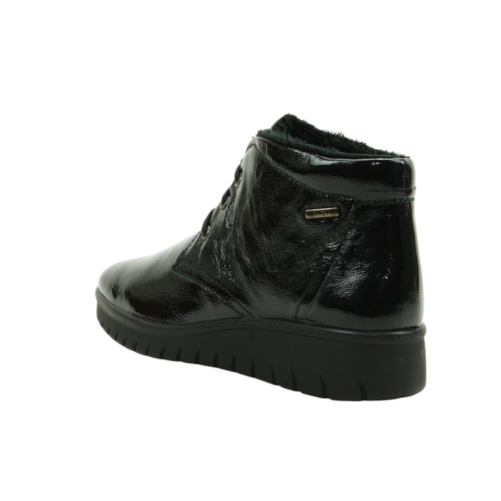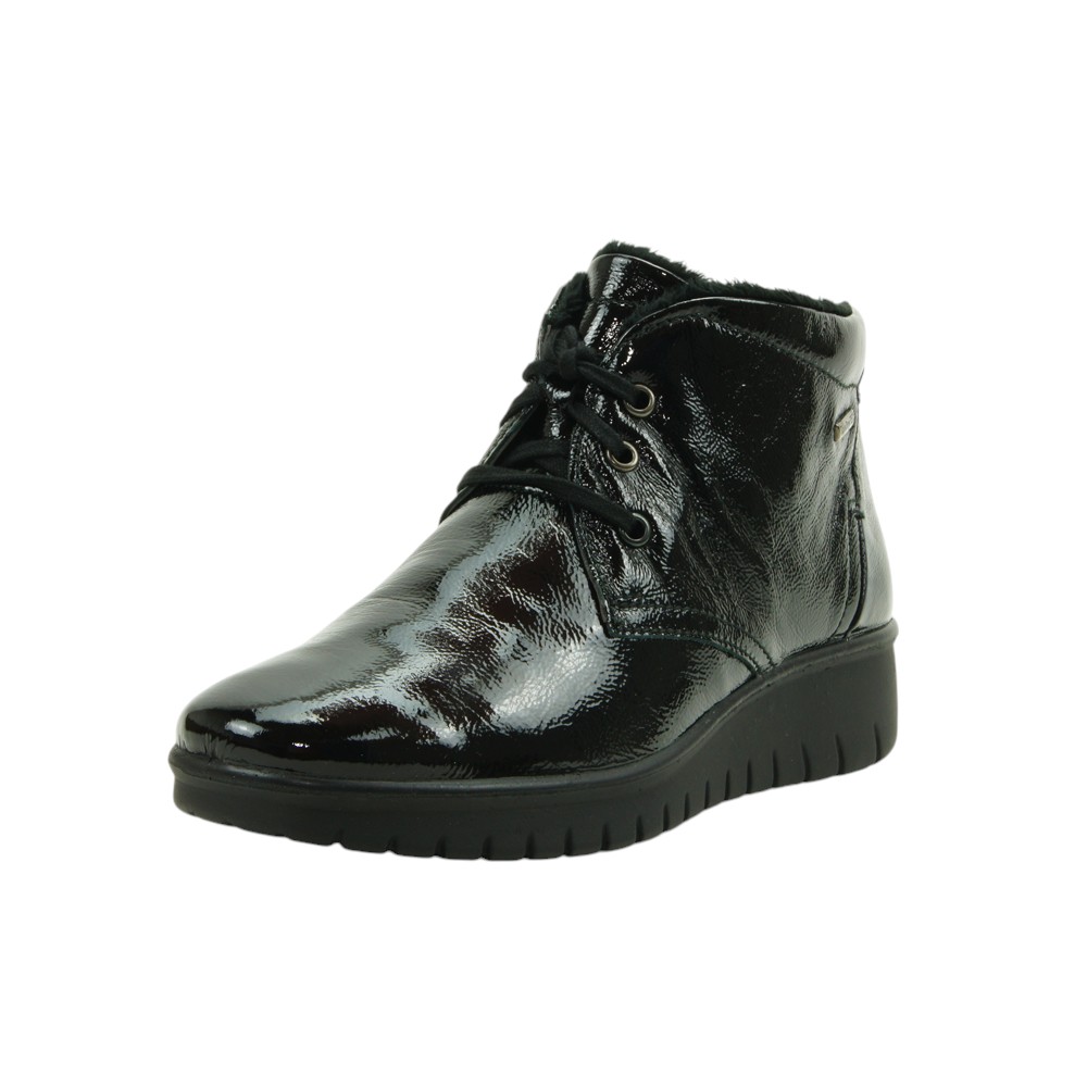 Éste botín de ancho especial y plantilla extraíble es ideal para asegurar el confort del pie incluso en las peores condiciones metereológicas gracias a su membrana impermeable y transpirable TOPDRY-TEX. El material exterior es de piel con acabado de cocodrilo. Forro interior en cálido y suave pelo. No tiene costuras en parte delantera y por lo tanto perfecto para pies con problemas de juanetes o dedos curvados. Ajustable con cordones.- 36