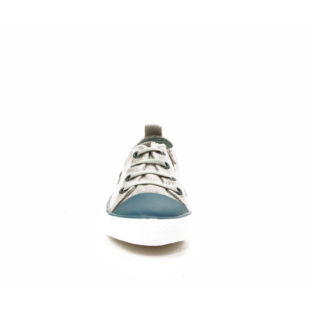 Deportivo de niño con cordones elásticos i cremallera. Material jeans fresco para el verano.