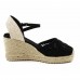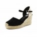 Fabricada con crochet calado combinada con textil, ajustable con hebilla. Plantilla acolchada, suela de goma antideslizante con la cuña en yute.- 36