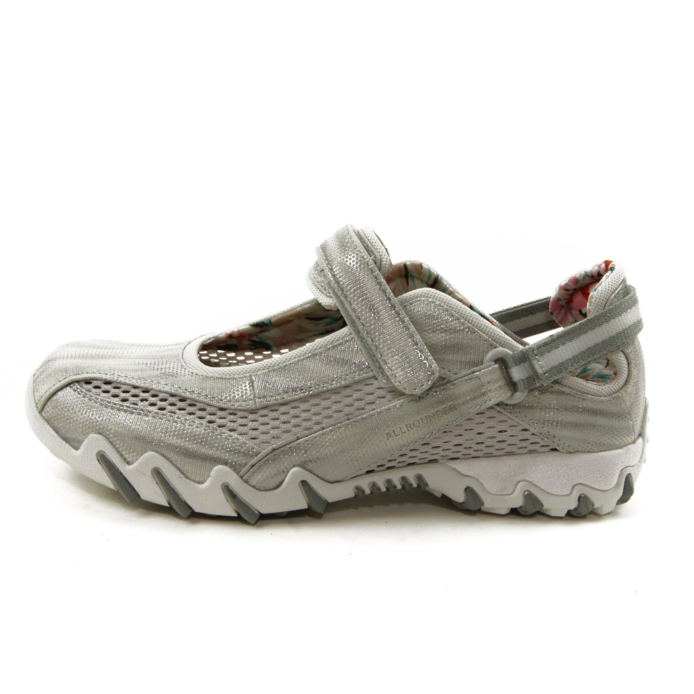 Zapato deportivo tipo mercedes fabricado en serraje combinado con rejilla calada. Ajusta perfectamente al pie por sus tiras con velcro en el empeine y el talón. Plantilla extraíble que permite la colocación de un plantilla podológica. Suela de goma flexible de gran agarre en cualquier tipo de terrenos. Con el sistema de amortiguación habitual de Mephisto con cámara de aire.-