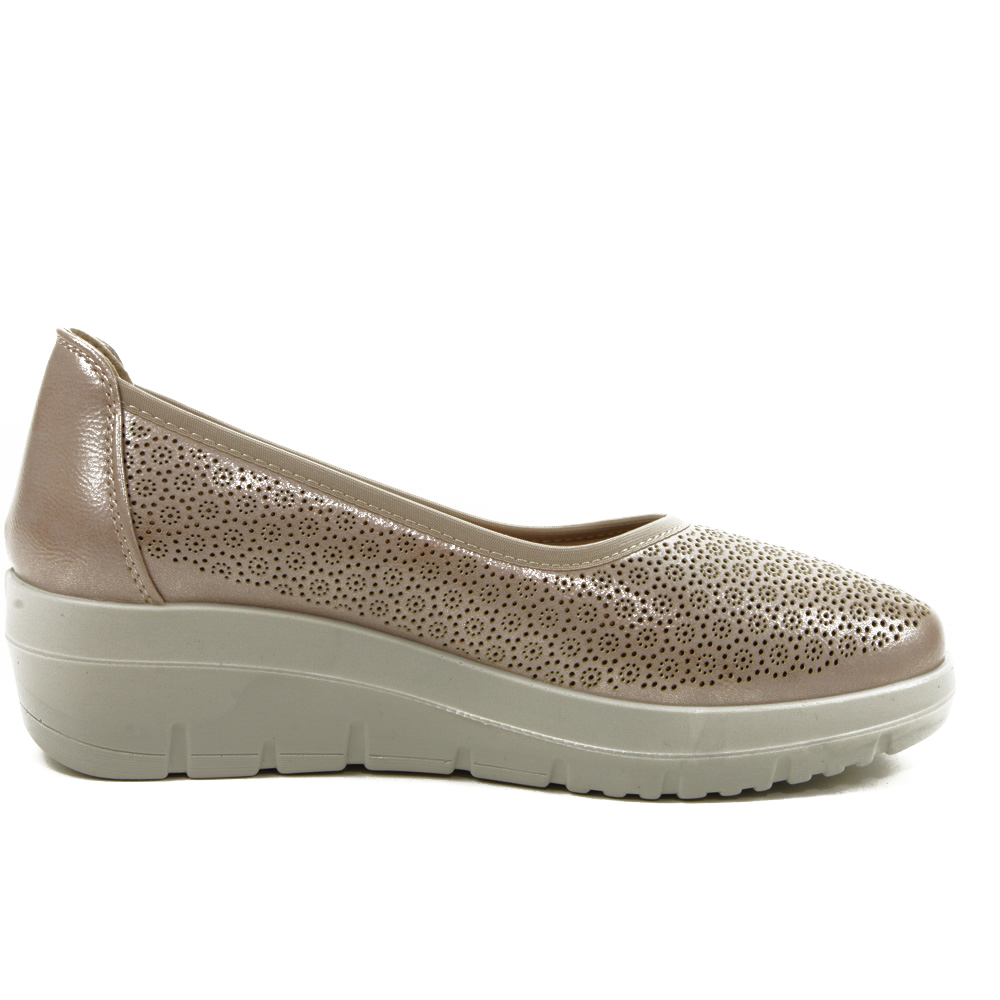 Bailarina de mujer con cuña en piel sintética picada para una mejor transpiración. Ajustable con velcro.