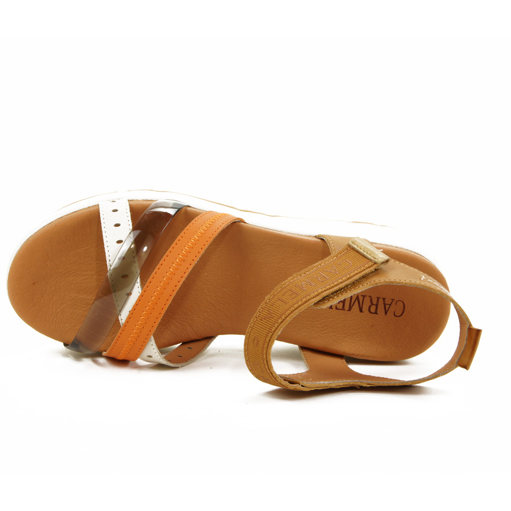 Sandalia fabricada en piel de calidad con tiras cruzadas de distintos colores. Ajustable con velcro en el tobillo. Dispone de plantilla acolchada que le aporta una gran comodidad para su uso diario. Suela de goma flexible y antideslizante.