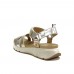 Sandalia fabricada en piel natural metalizada con tiras cruzadas. Ajustable con velcro en el tobillo. Plantilla acolchada de gran comodiadad, ideal para uso diario. Suela de goma antideslizante.