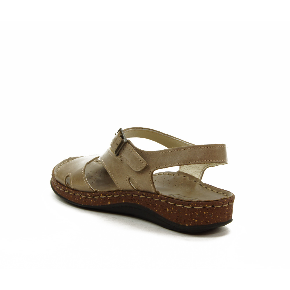 Sandalia de estilo rústico fabricada en piel natural de gran calidad. Plantilla acolchada muy cómoda. Suela cosida a mano para una mayor flexiblidad y duración. Ajustable con hebilla.