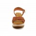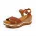 Sandalia de plataforma gruesa, flexible y cómoda, de piel natural con tiras cruzadas. Ajuste con hebilla trasera. Planta de gel.