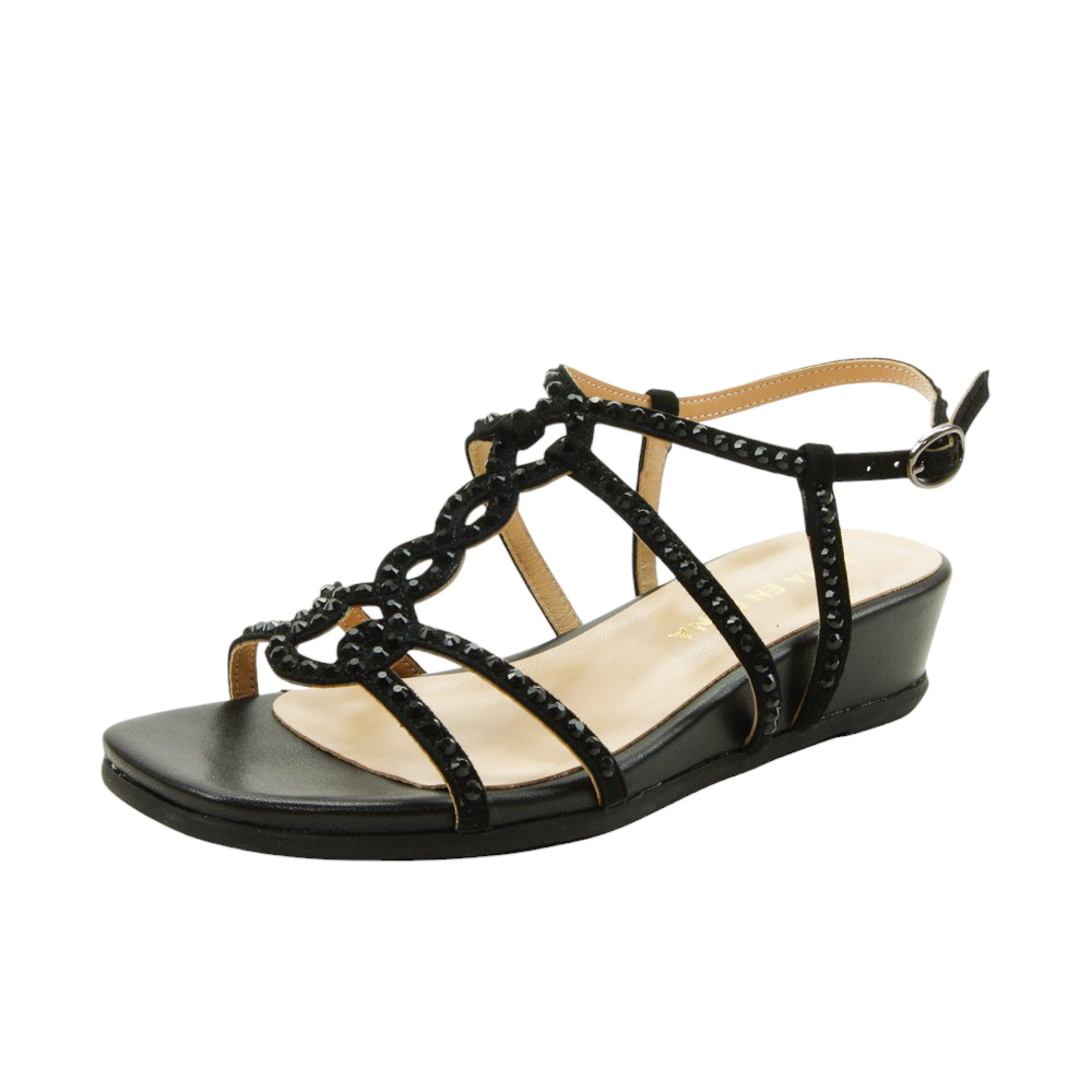 Sandalia con cuña con detalle de brillantes en sus tiras. Ajustable con hebilla. Plantilla acolchada forrada en piel muy cómoda. Suela con lámina de goma flexible y antideslizante. Ideal para todo tipo de eventos.- 37
