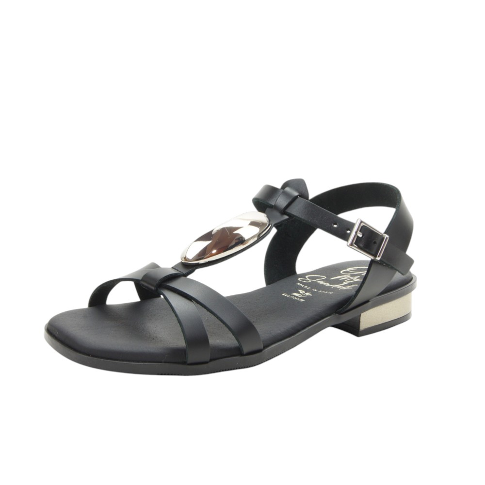 Modelo de estilo griego fabricado en piel natural de alta calidad con elegante joya plateada en la pala. Ajustable con hebilla en la tobillera. Planta de microfibra transpirable confort gel que proporciona una mayor amortiguación. Suela de poliuretano flexible y ligero.- 36