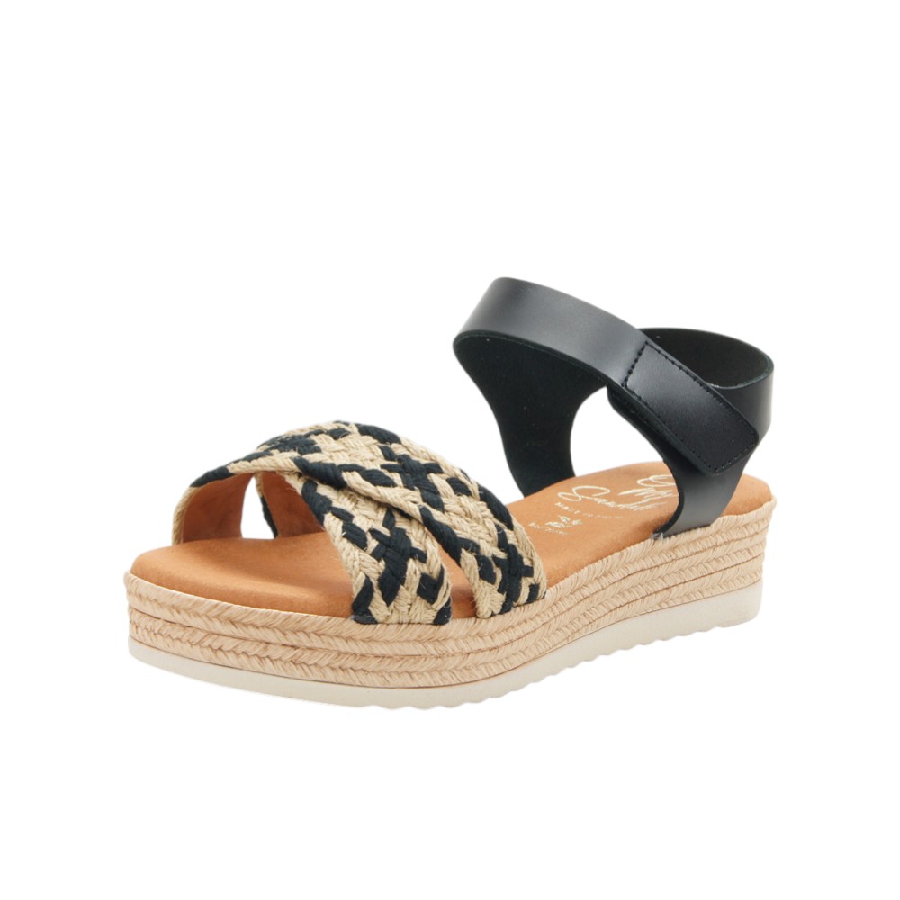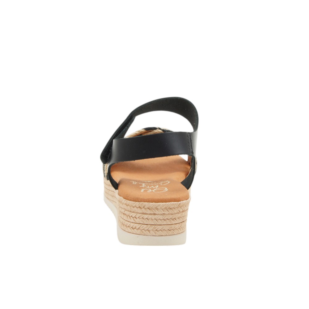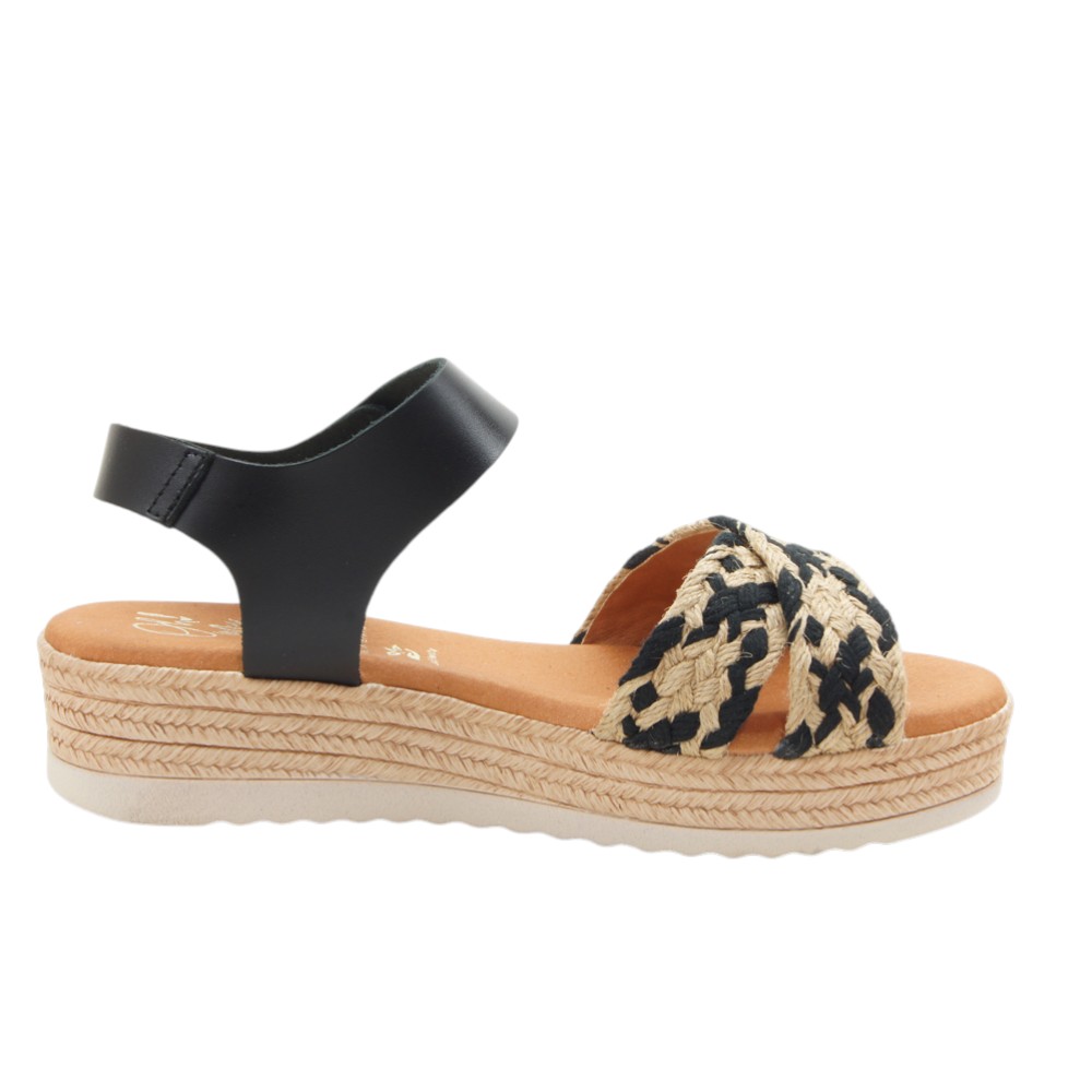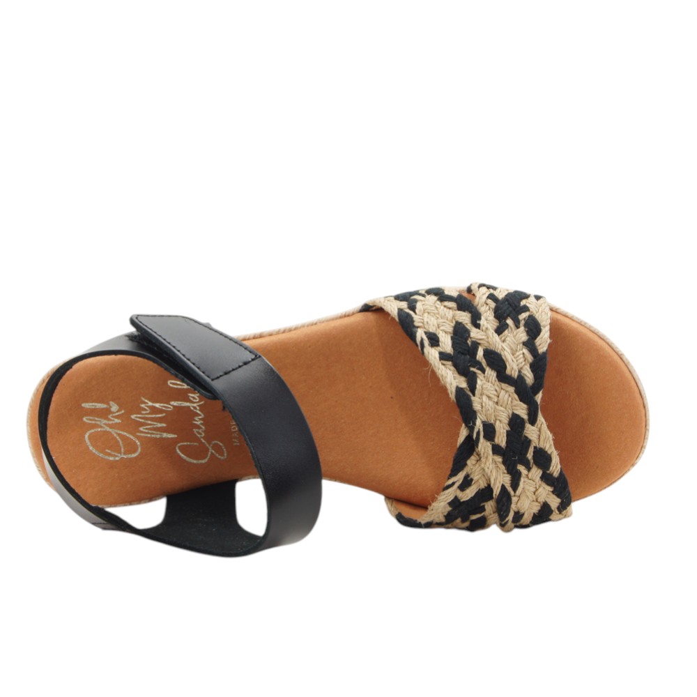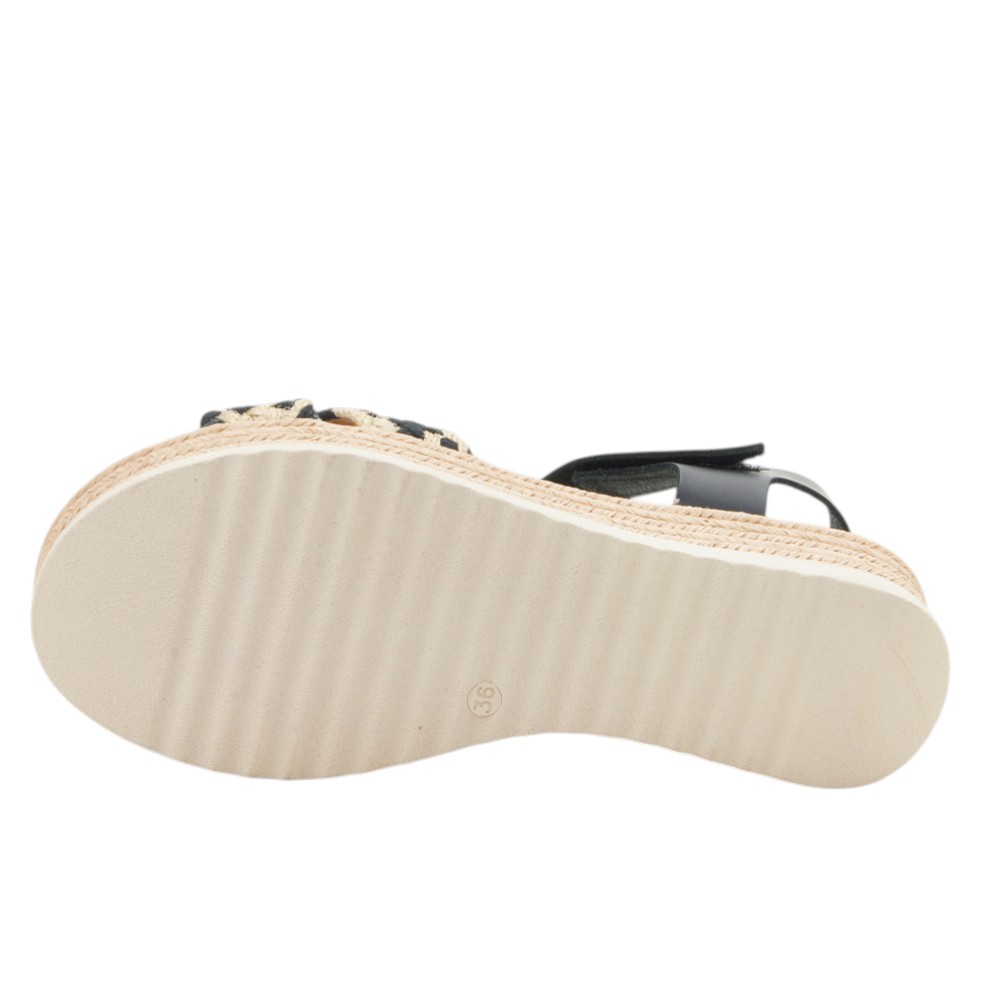 Fabricada en piel natural de alta calidad. Diseño veraniego con tiras trenzadas delanteras simulando el esparto. Ajustable con velcro en la tobillera. Planta de microfibra transpirable confort gel que proporciona una mayor amortiguación. Con plataforma forrada en esparto y lámina inferior en goma EVA antideslizante y resistente.- 35