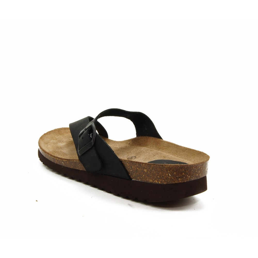 Sandalia bio tipo esclava muy suave que no molesta en el dedo. La suela está compuesta de un parte superior de corcho prensado recubierto en serraje de piel, y una parte inferior de material Extralight grueso pero muy ligero y flexible.