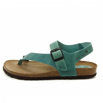Sandalia fabricada totlamente en piel natural envejecida con acabado engrasado, piel muy suave que no molesta en el dedo. Ajustable con hebilla. Suela compuesta de corcho prensado recubierto en serraje de piel, parte inferior de material extralight muy ligero y flexible. Inter-bios, los auténticamente cómodos.- 38