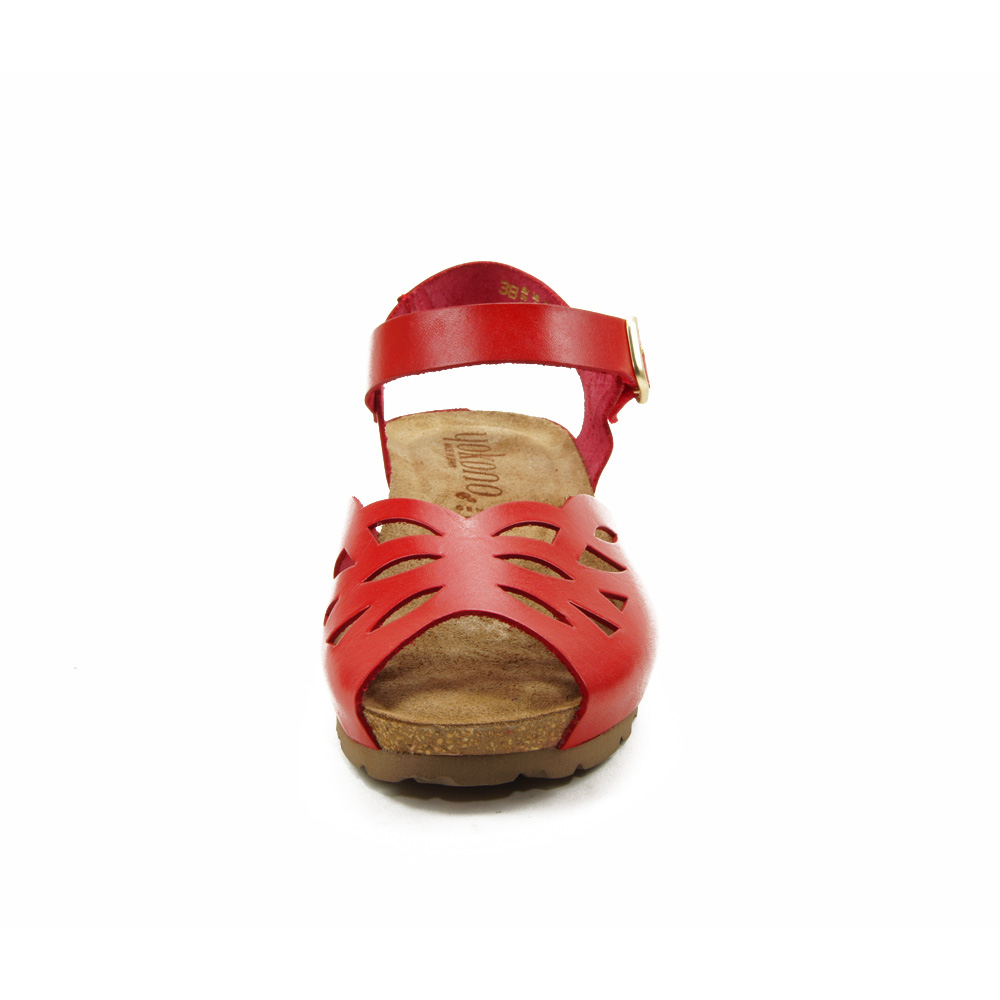 Sandalia en piel natural troquelada con la puntera casi cerrada. Ajustable con velcro en el tobillo. Plantilla acolchada y antideslizante de corcho que la hace más transpirable. Suela de poliuretano flexible. Una sandalia indispensable para este verano.- 37