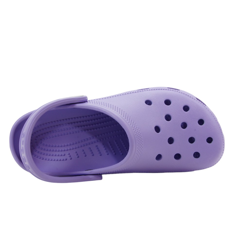 Zueco Crocs modelo clásico perforando. Tira trasera removible para mayor sujeción. Horma de ancho clásico.