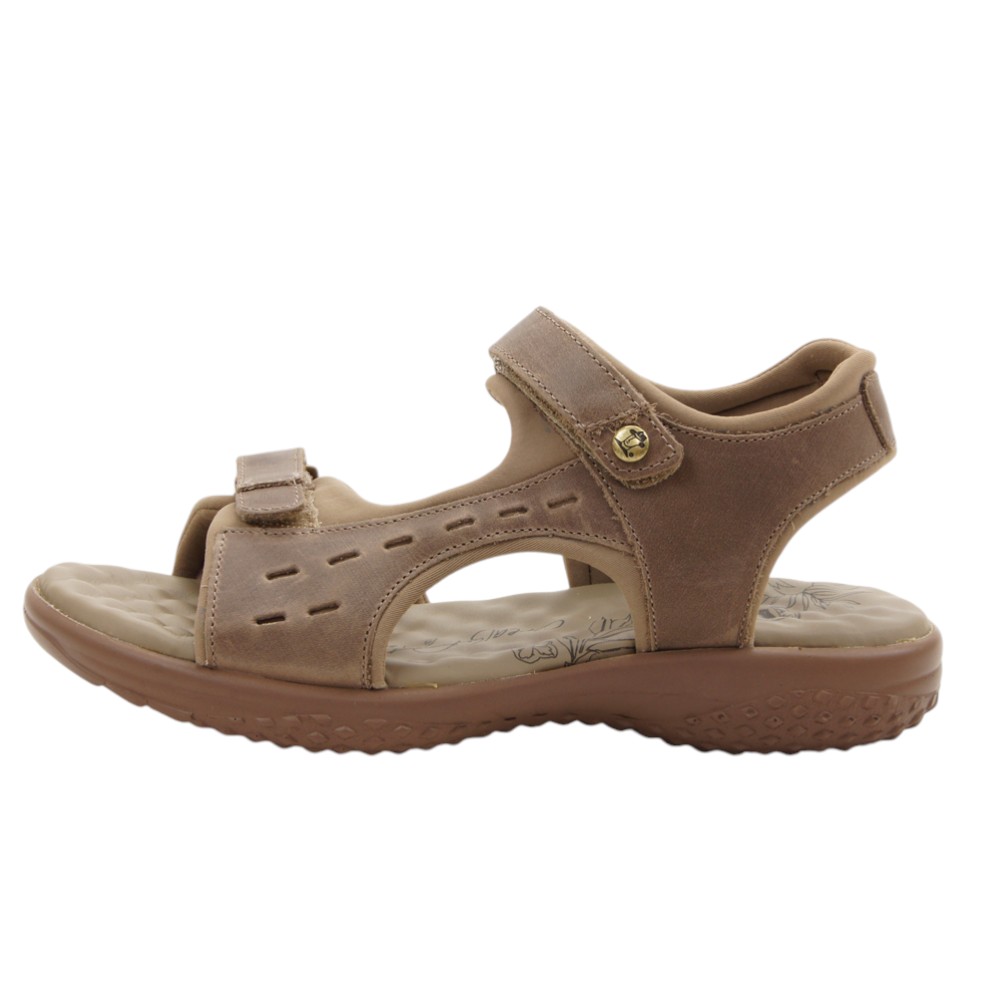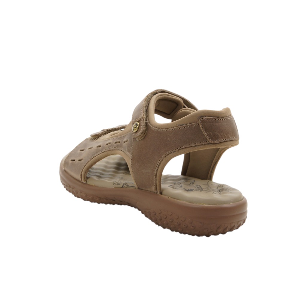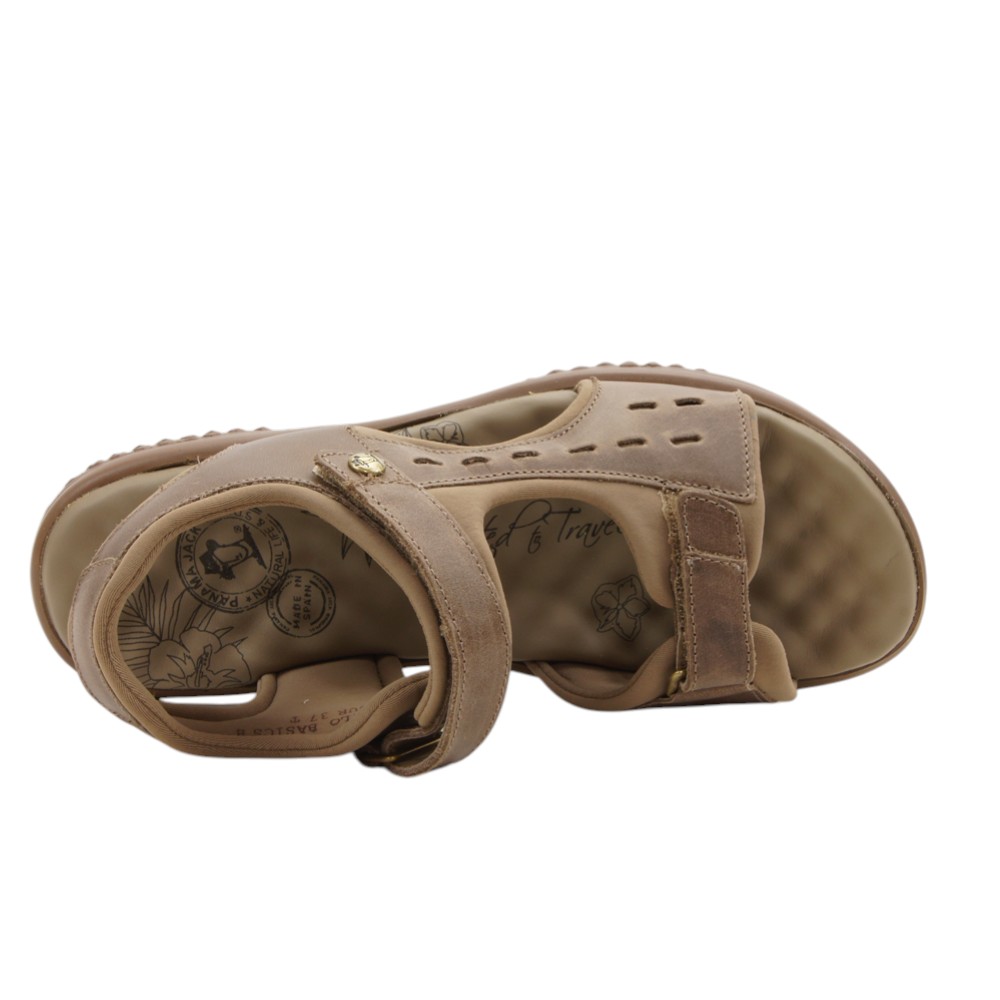 Fabricada en piel natural calada de gran calidad. Se ajusta perfectamente al pie por sus dos tiras con velcro. Dispone de plantilla anatómica para mayor amortiguación y un extra de comodidad. Con suela ligera de corcho y poliuretano de gran flexibilidad y resistencia.- 36