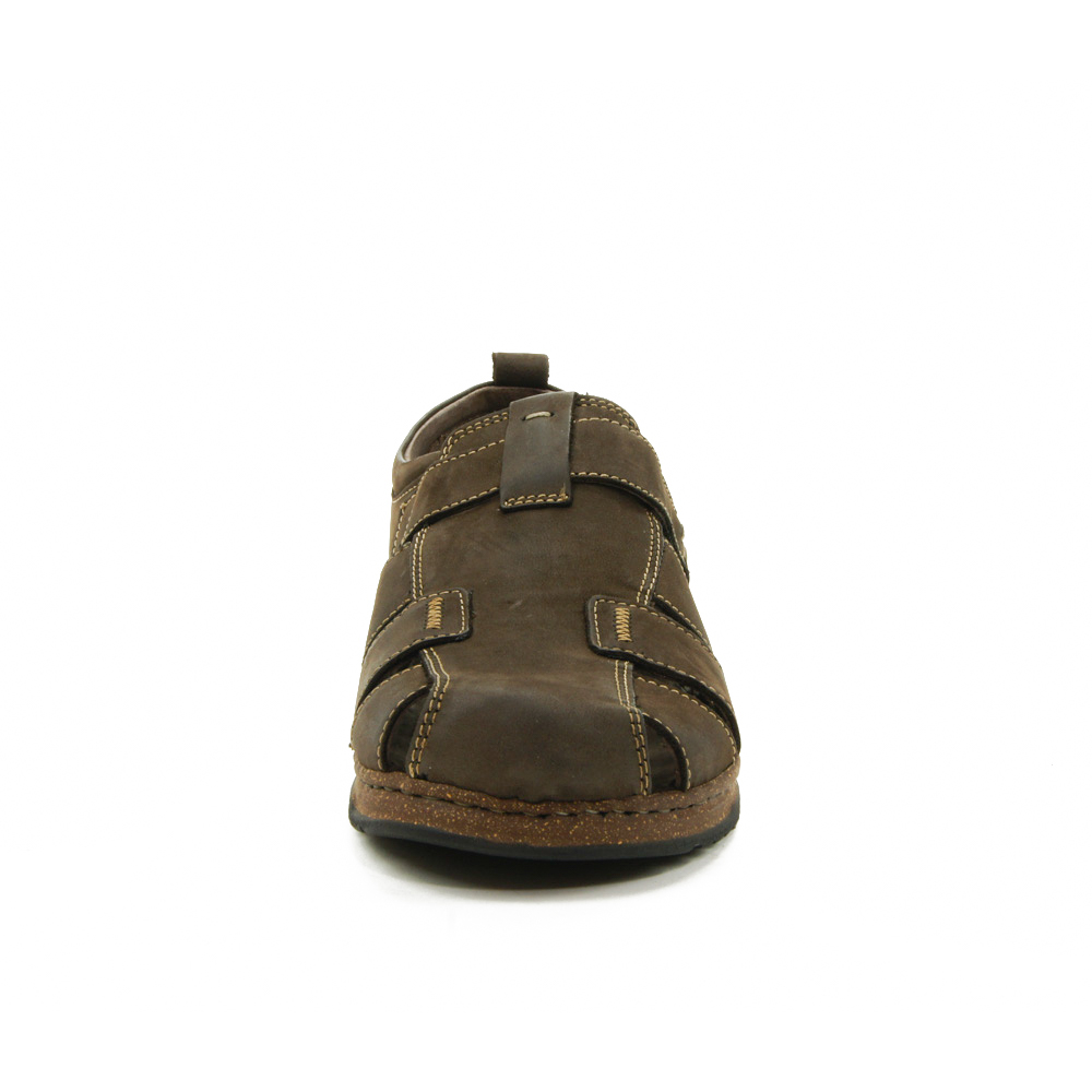 Sandalia cerrada muy blanda para hombre, fabricada totalmente en piel. Ajustable con velcro.