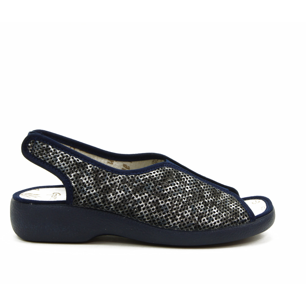 Zapatilla para pies anchos fabricada en tejido con elástico central y otro trasero para una mejor adaptación al pie.