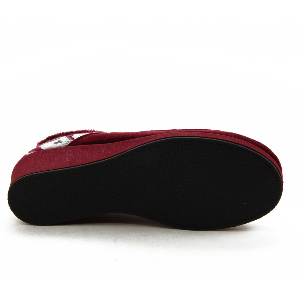 Zapatilla cerrada de estar por casa con cuña. Horma ancha con corte central en el empeine que permite calzar correctamente a pies anchos.