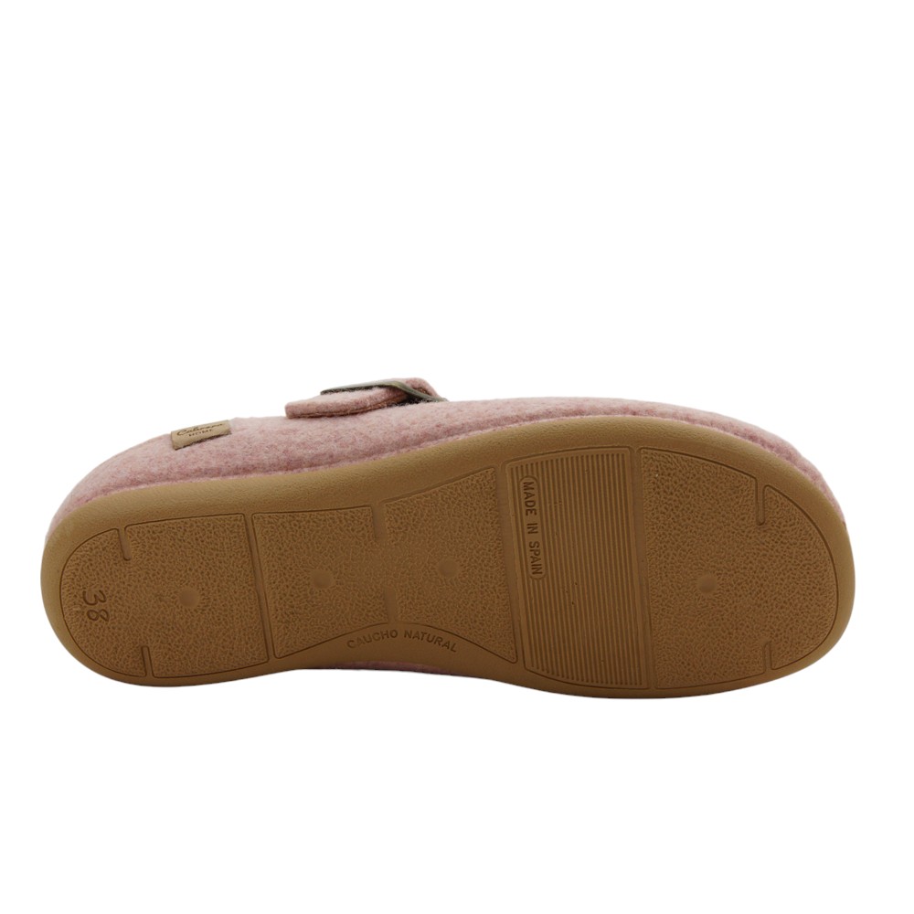 Zapatilla fabricada en cálida lana acrílica de gran calidad con elegante hebilla decorativa en la pala. Plantilla también de lana muy blanda y calentita de gran confort. Suela de goma ligera y flelexible. Recomendamos escoger una talla más de lo habitual.- 37