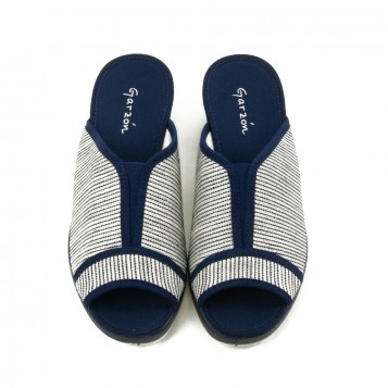 Zapatilla para casa para mujer tipo chancla de verano con cuña. Corte central con elástico para calzar pies anchos sin rozar el empeine.