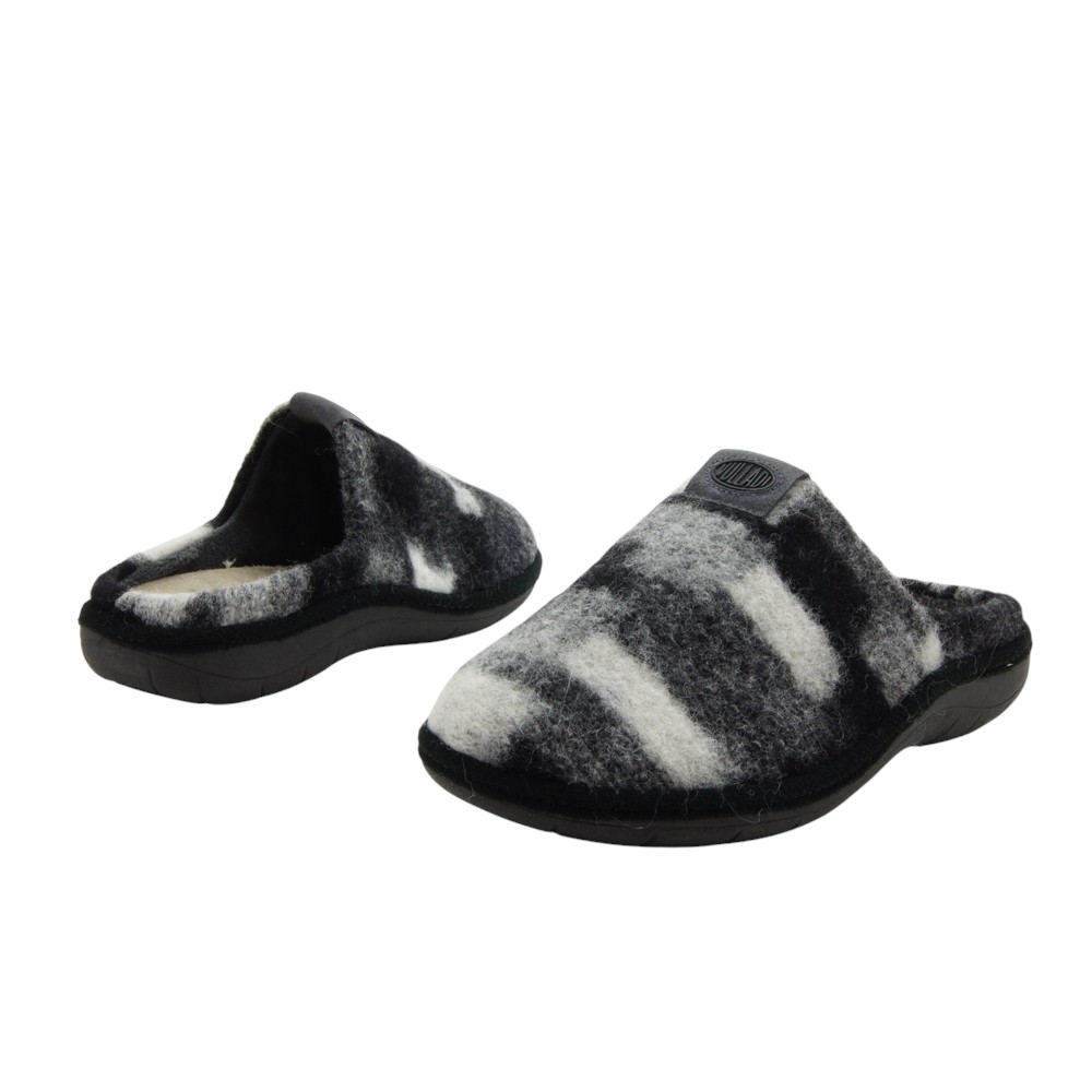 Zapatilla fabricada en lana acrílica y confortable. Con diseño abstracto combinando tonos verdes, negros y grises. Suela de goma flexíble y ligera. Lavable a 30ºC. Recomendamos escoger una talla más de lo habitual.- 41