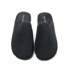 Zapatillas tipo zueco en tejido fresco de toalla rizo de algodón. Suela de microporoso muy ligera especial para parquet que no deja huella ni hace ruido.