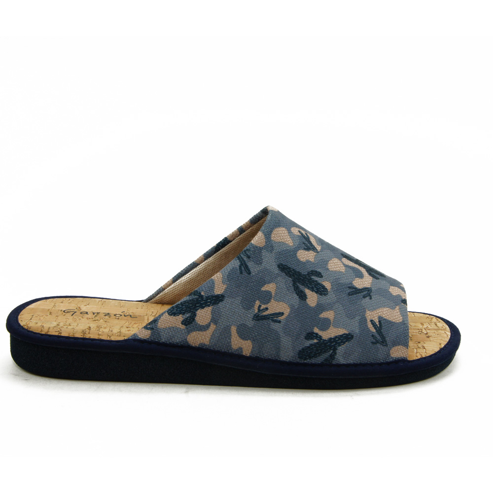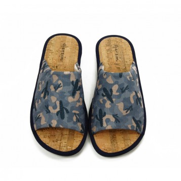 Zapatilla de casa para hombre, cómoda y fresca gracias a su tejido fresco y la plantilla de corcho natural, muy transpirable y que permite ser lavado.