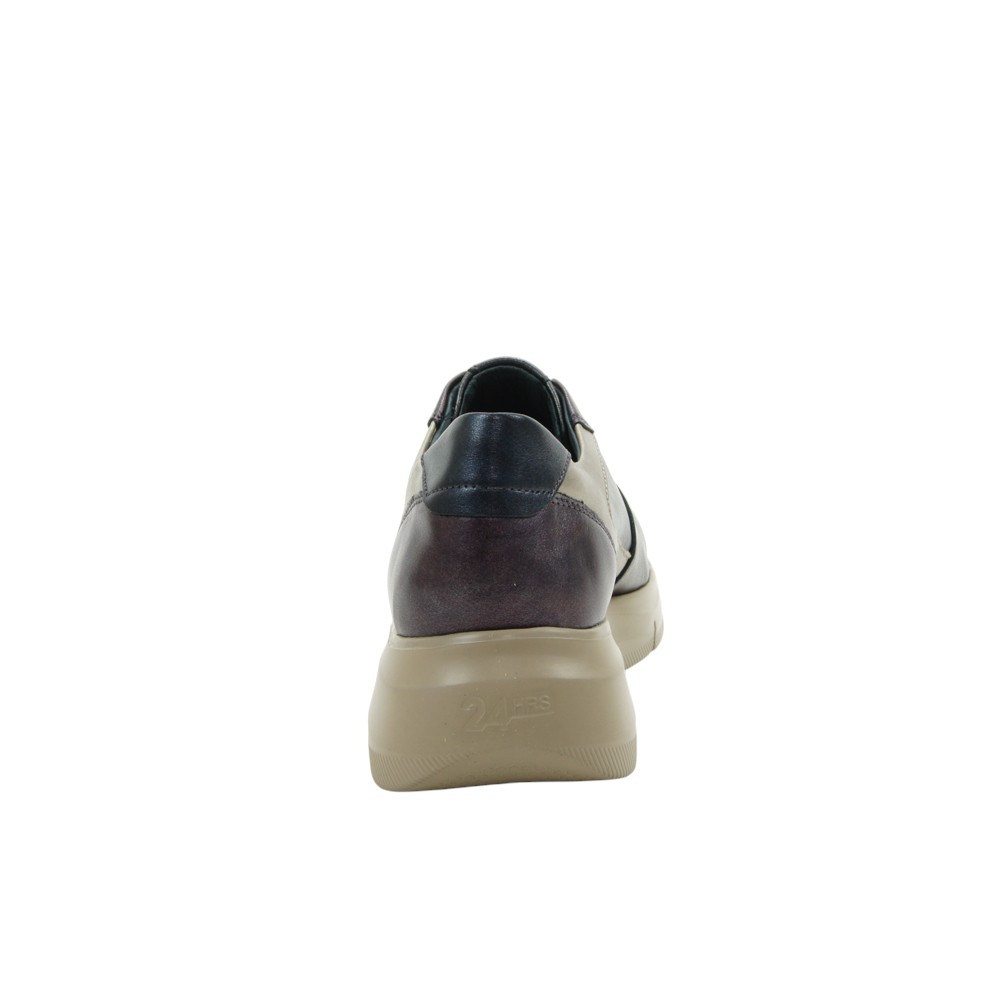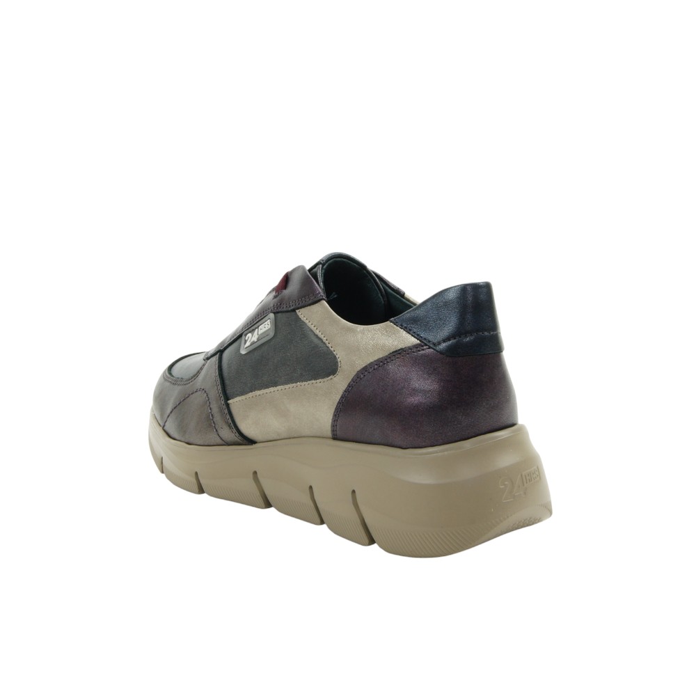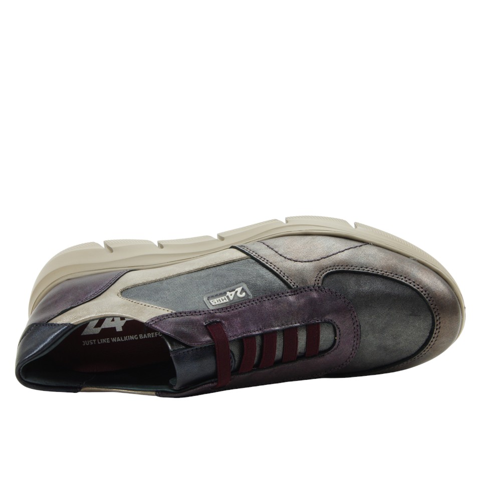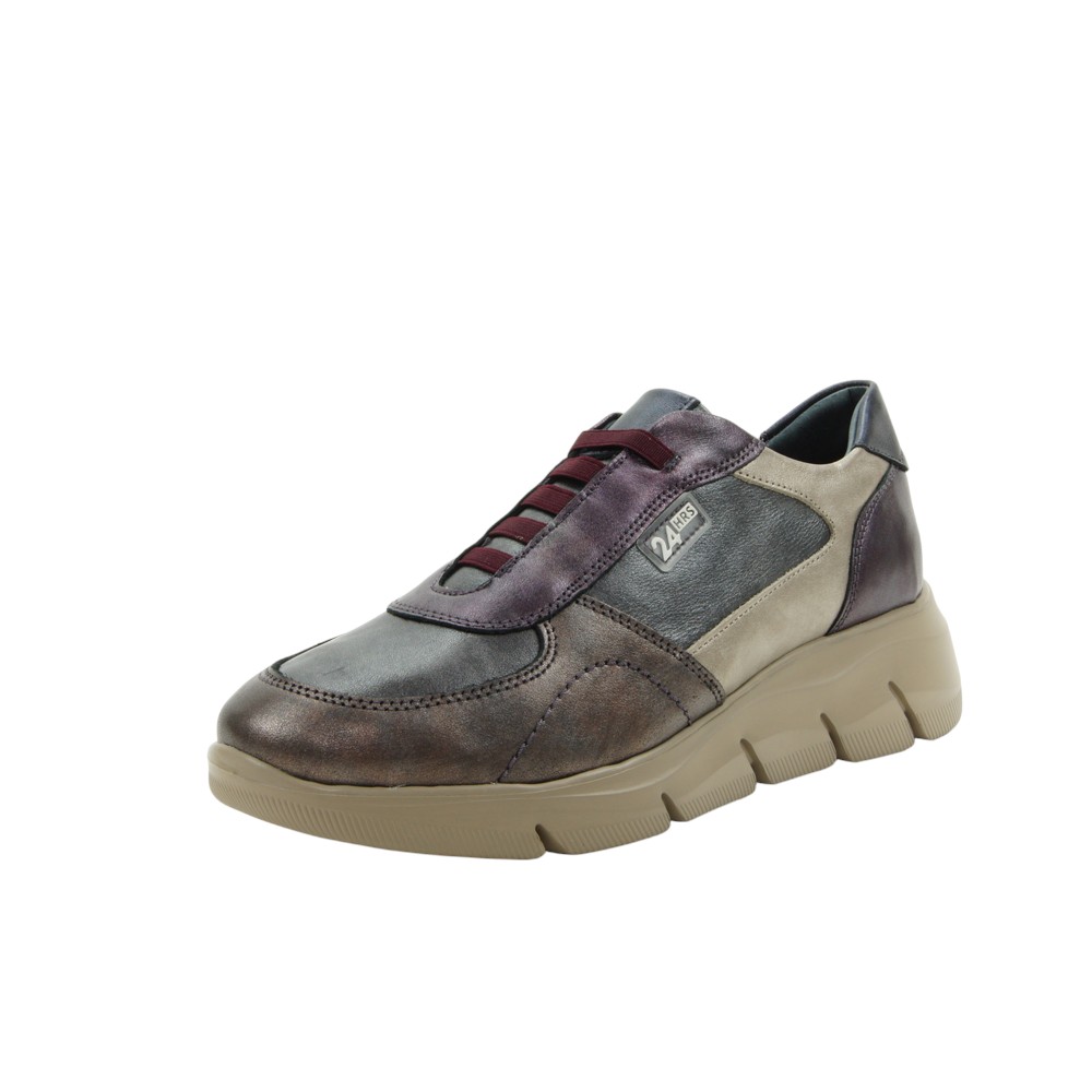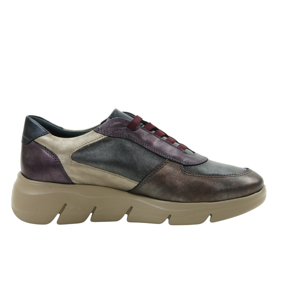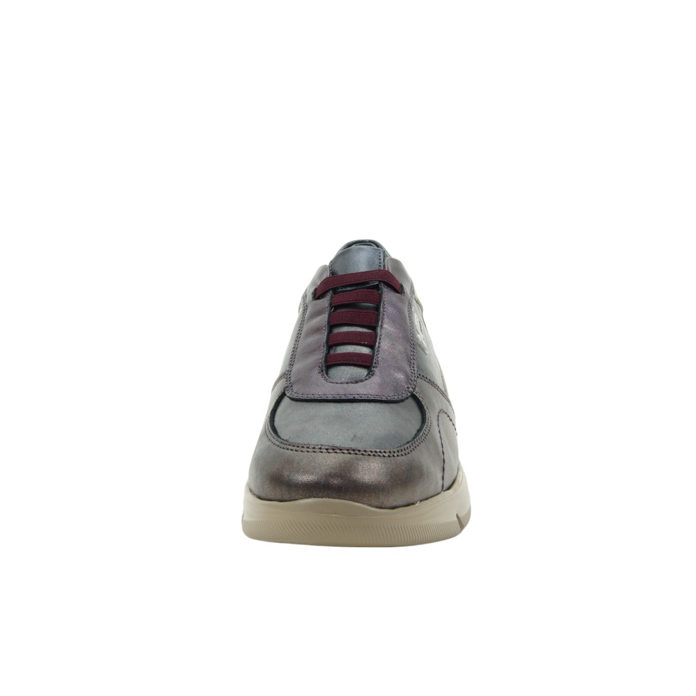Sneaker fabricada en piel natural combinada con metalizado. Con detalle de cordones elásticos para facilitar el calce. Dispone de plantilla extraíble con posibilidad de colocar una plantilla podológica propia. Suela dentada de goma EVA extralight muy ligera, flexible y antideslizante.- 38