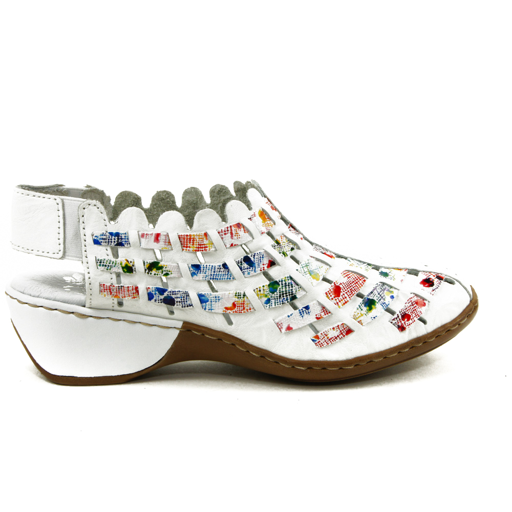 Calzado de piel trenzada muy blanda cerrada de la punta y abierta de atrás.