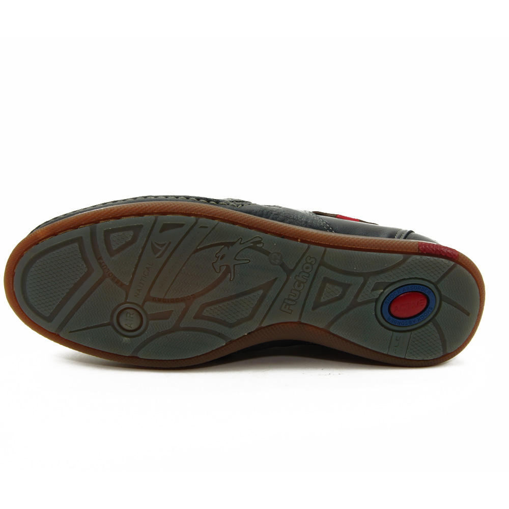 Mocasín perfectamente ajustable gracias a sus elásticos laterales. Dispone de plantilla extraíble con posibilidad de colocar plantilla podológica delgada. Para una mayor suavidad y frescor el zapato no tiene forro interior. La suela es de goma con grandes propiedades antideslizantes, y como siempre en fluchos incorpora el sistema Shock Absorber de la marca.- 45