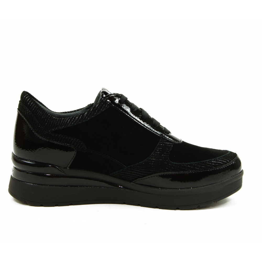 Zapato casual fabricado en piel de gran calidad muy blanda combinada con charol .Se ajusta perfectamente al pie con su cremallera lateral y cordones en el empeine para un mejor calce.