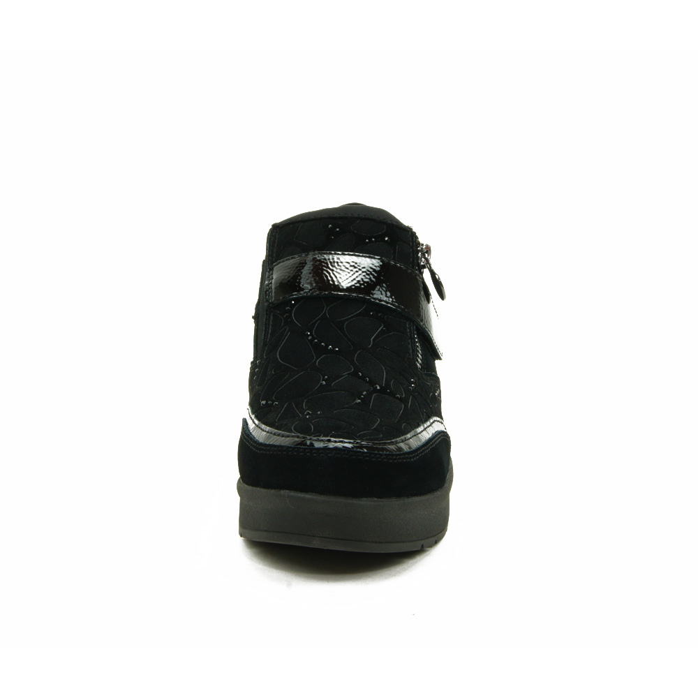 Zapato casual de Stonefly. Fabricado en piel de gran calidad muy blanda combinada con charol. Se ajusta perfectamente al pie con su velcro y cremallera lateral.