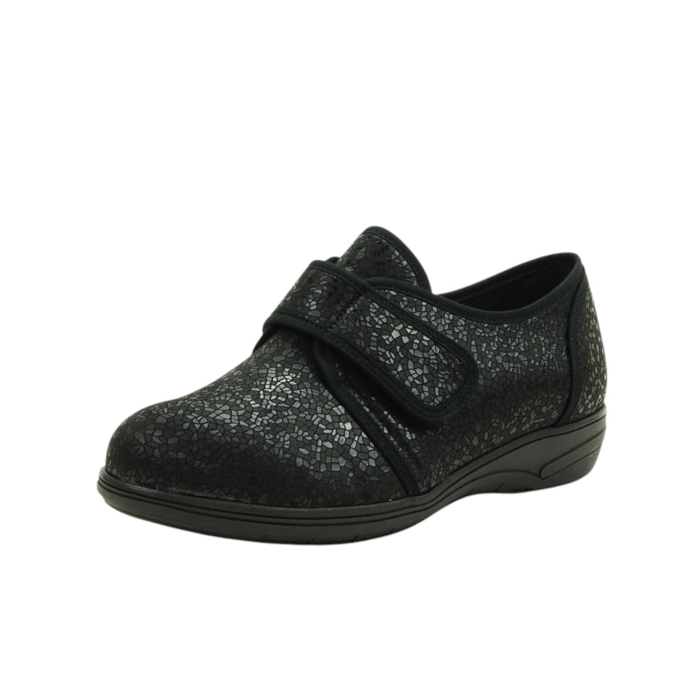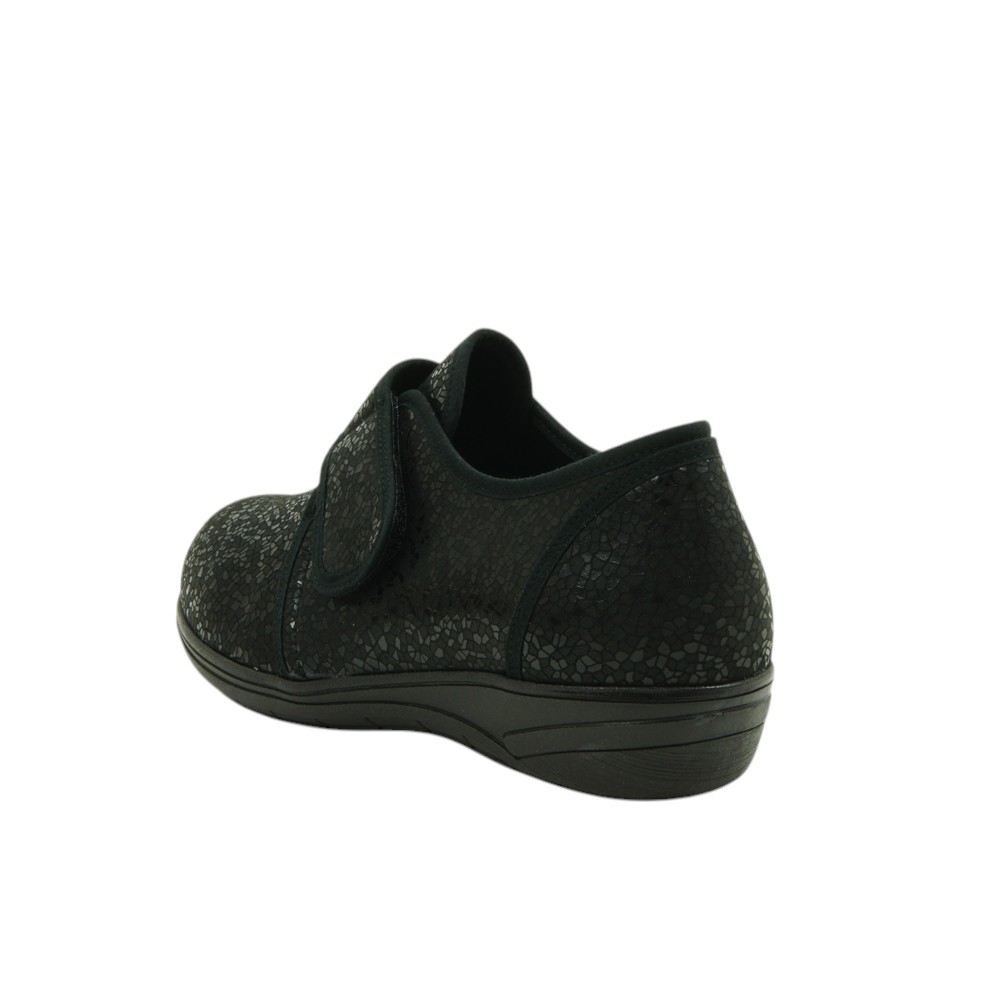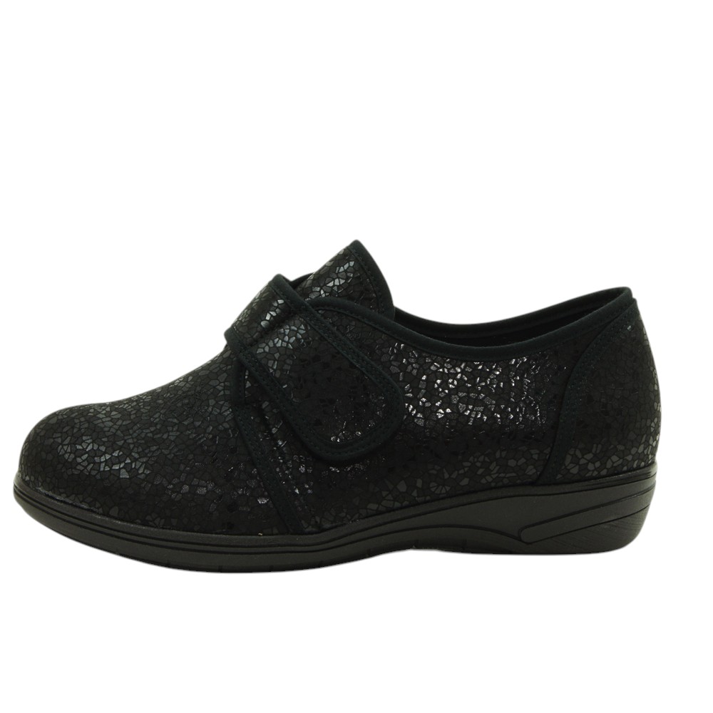 Zapato con anchura especial fabricado en licra sin costuras para una mejor adaptación al pie. Cuenta con plantilla extraíble y permite la colocación de una plantilla podológica. Ideal para pies anchos, hinchados, pies delicados o con juantes. Ajuste fácil con velcro.- 37