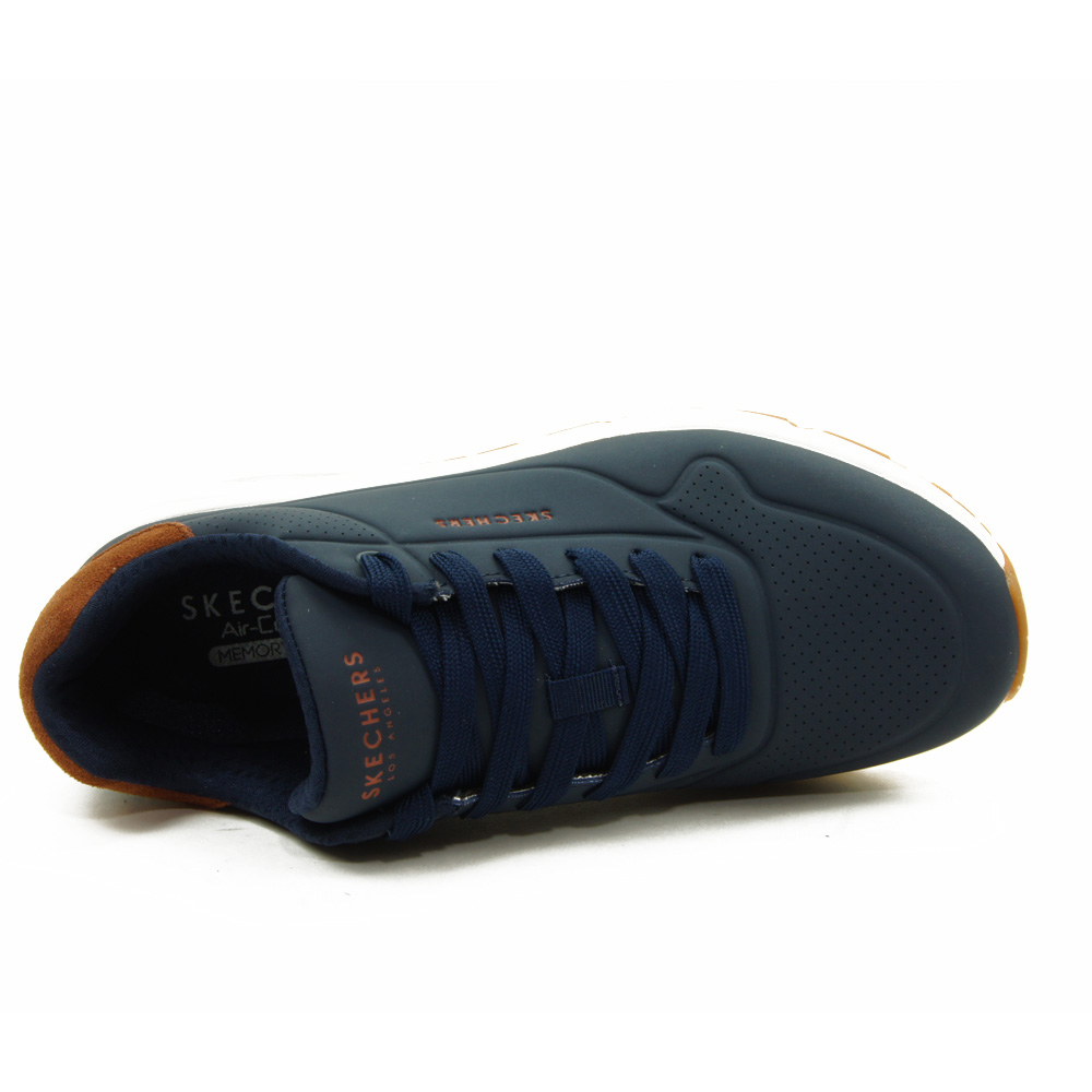 Zapato casual de hombre con media suela visible con cámara de aire Skech-Air, que proporciona una mayor amortiguación. Fabricado en piel sintética duraleather. Ajustable con cordones.