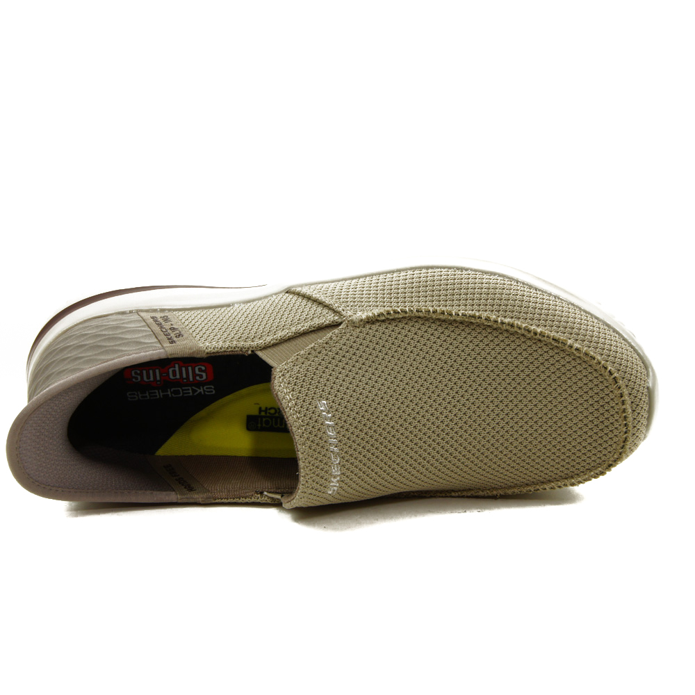 Zapato tipo mocasín de Skechers con la tecnología Slip Ins, la comodidad de ponerlo sin manos. Fabricado en tejido transpirable . Con goma elástica en los laterales para un mejor ajuste.