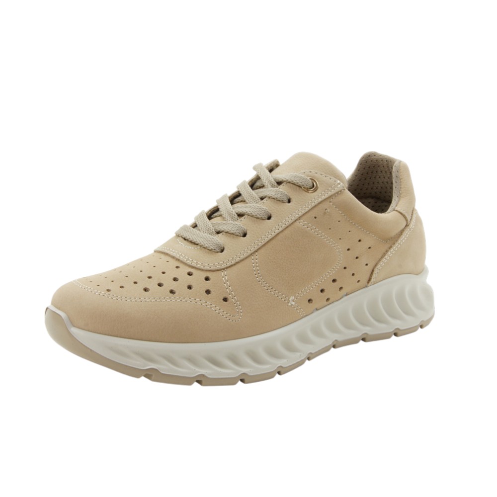 Zapato casual elegante y cómodo de horma ancha de Imac. Corte en piel natural troquelada para una mejor sensación de frescor. Ajustable con cordones.