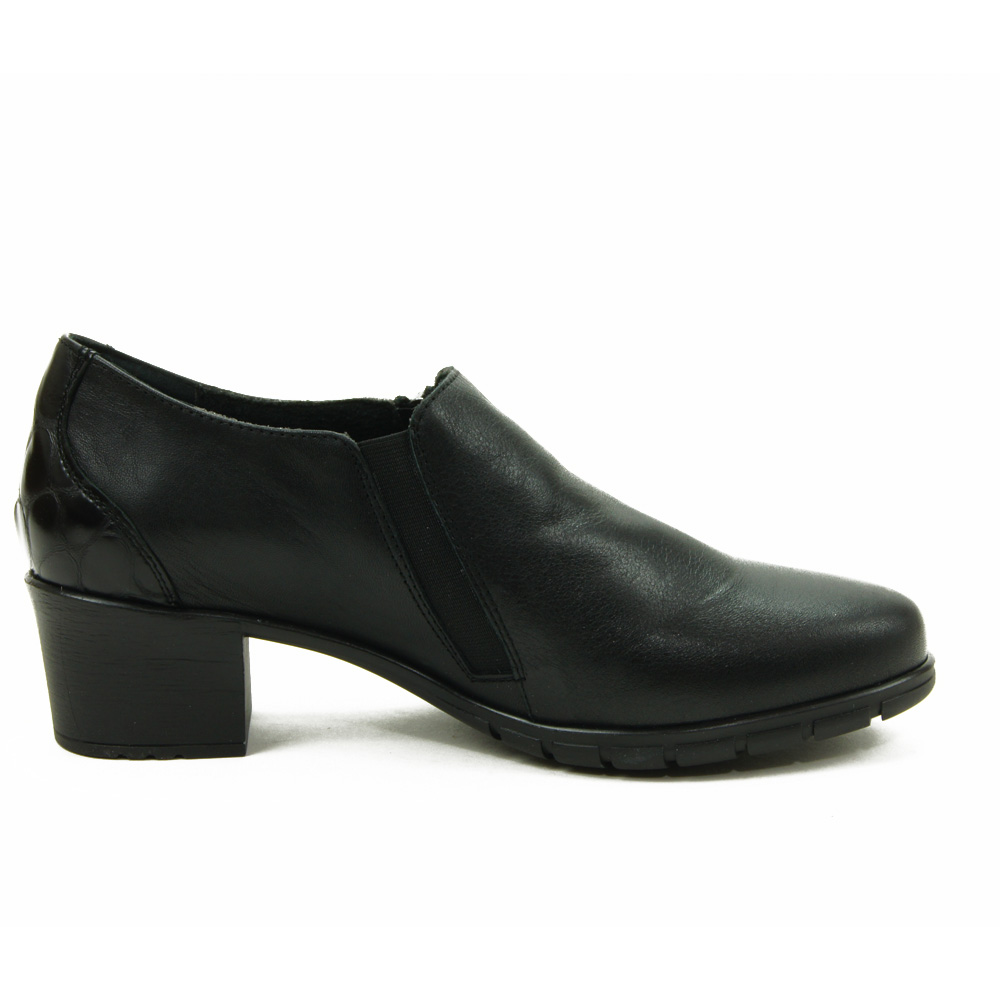 Zapato abotinado de gran comodidad en pie muy blandal, con tacón ancho muy estable.