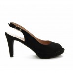 Sandalia fabricada en ante sintético con tacón fino. Con tiras cruzadas y ajustable con hebilla en el tobillo. Dispone de plantilla interior en piel natural para una transpiración perfecta. Combina de forma elegante en fiestas y ceremonias.